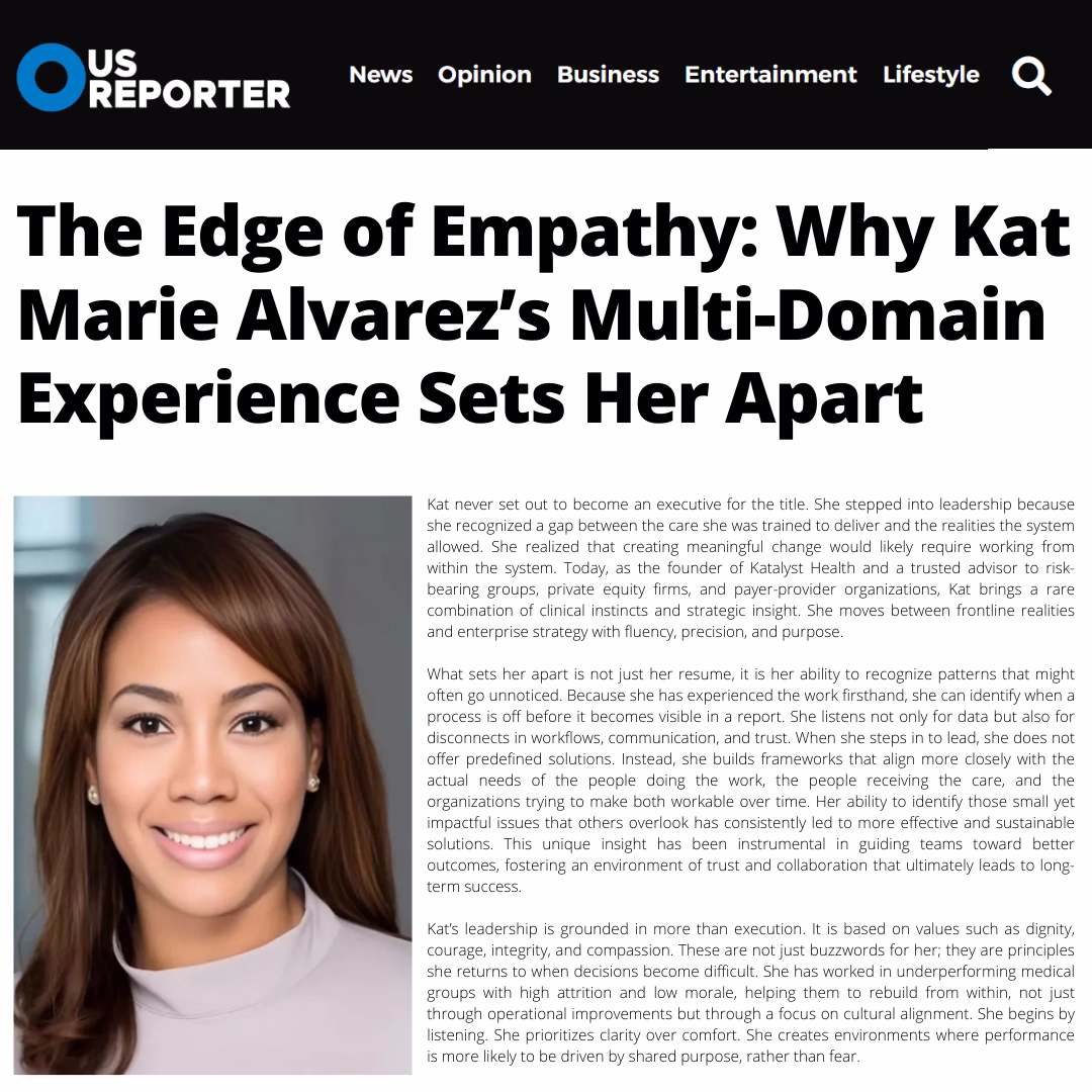 Kat shares insights on healthcare transformation, leadership, and growth strategy. A best-selling author, she is also a sought-after national speaker known for her expertise in value-based care, leveraging global resources and AI to streamline healthcare operations, reduce costs, and elevate performance.